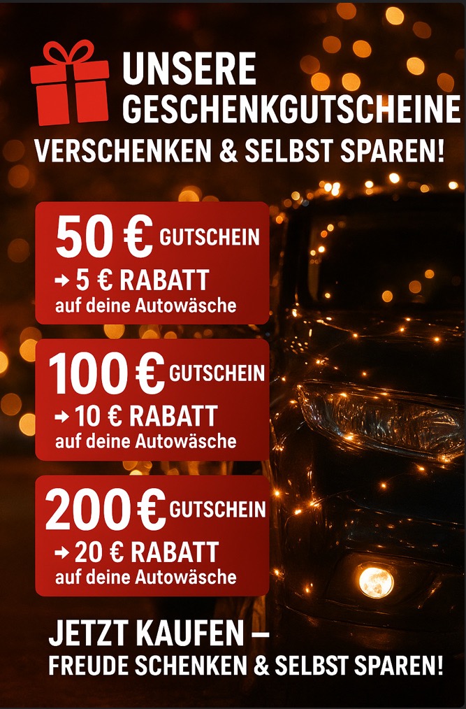 ⭐️50 € Gutschein5 € Rabatt auf deine Autowäsche ⭐️100 € Gutschein